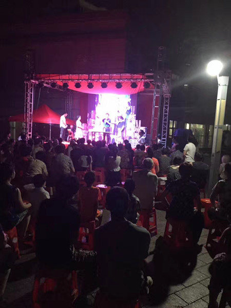 8月2日晚,同博物業(yè)與社區(qū)聯(lián)辦的消防安全、垃圾分類(lèi)宣傳演出走進(jìn)天成錦江苑小區(qū)。